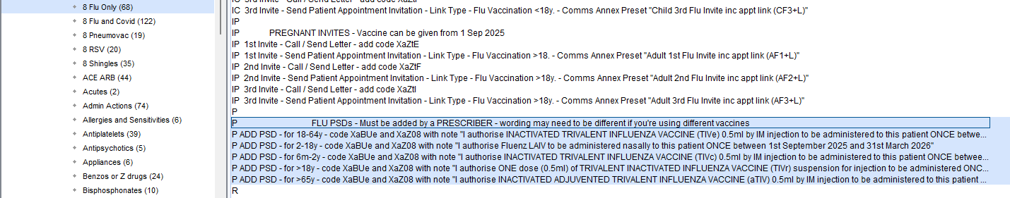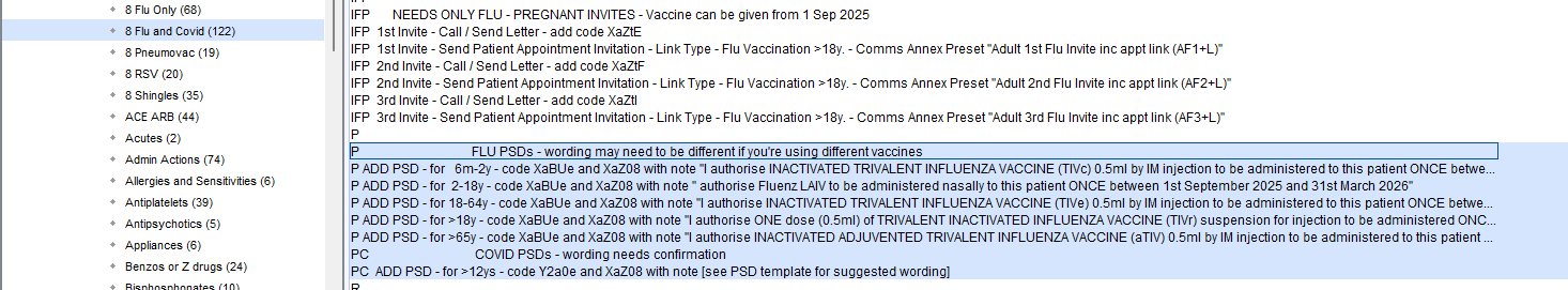 There are reports in the folders Welby Innovate Prescribing > 3 Flu Only and 3 Flu and Covid to help you identify patients who need may need PSDs adding to their record. There is a more detailed article on how to bulk add PSDs here.