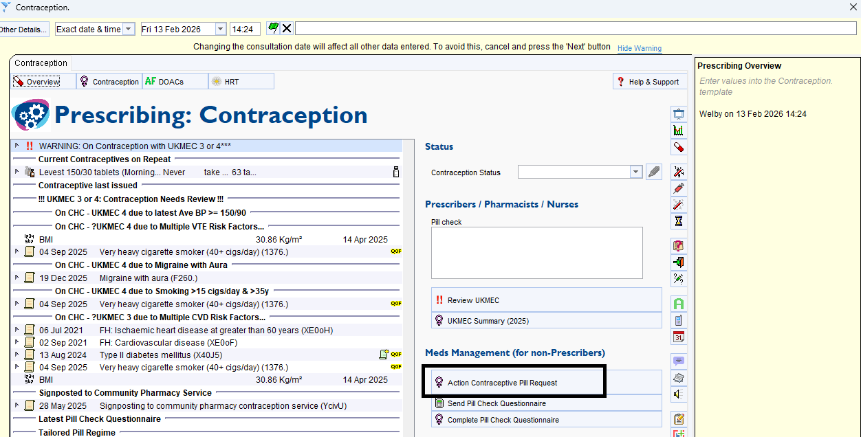 or on the Contraception page of the Prescribing Overview template:
