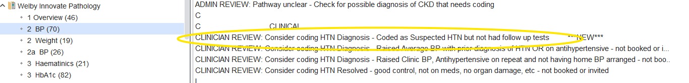 - We will use an BP report within Welby Pathology as an example. The report name indicates that these patients need a clinical review.