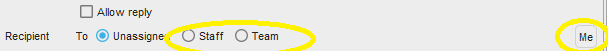 - In this box you will choose who the Questionnaires are returned to from the patient, you can choose one member of staff, yourself by clicking 'Me'