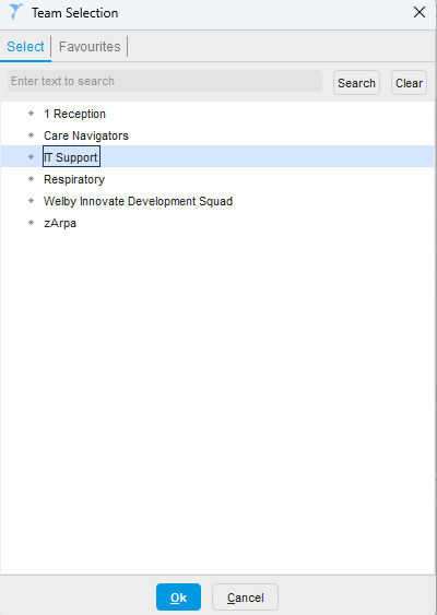 - Or you can choose a team, such as Care Navigators, Reception etc.