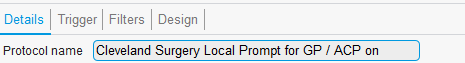 - Rename it to reflect your practice (e.g., Cleveland surgery - Local prompt for GP/ACP on Starting Consultation)