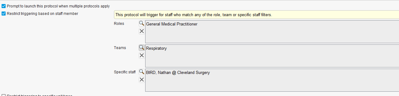 - Remember to update the prompts regularly to include any new staff members, locums or role changes, as the prompts will not appear for roles, teams or staff members not selected in the trigger tab
