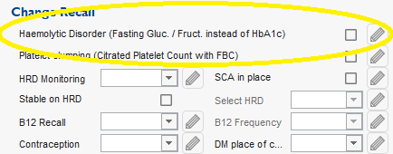 The is a check-box on the Manage Recall template to record that a patient has a Haemolytic Disorder and needs an alternative test.