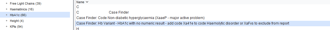 - A request from the meeting was to build a case finder for Hb variants, i.e. patients who can’t have a HbA1c and need a Frustosamine or Glucose instead. This report is now available: