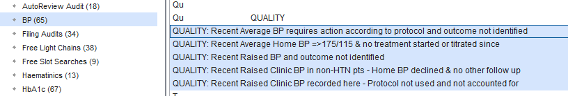 - BP – in September, we changed our approach with raised average BPs, to go straight to coding a hypertension diagnosis, rather than just suspected hypertension. This approach is working better and means patients will have annual monitoring and reviews, even if they don’t respond to invites to have other tests. We’ve had a few issues with updating all the elements of the system with this change. There may be a few patients appearing in reports to send letters out to where there’s been a slight delay as a result. We’ve also built some more reports to check our systems are working as they should, and to provide opportunity to audit how they’re being used in practice. We’d recommend auditing some of the patients in these reports: