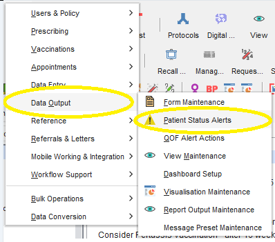 All three icons do the same thing when you click on them. You can keep all three, or you can disable one or two if you prefer. To disable a shape, first go to Patient Status Alerts in SystmOne as below.