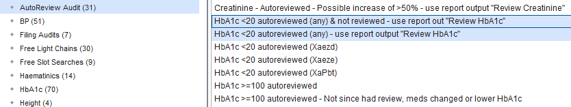A practice has reported a patient with a very low HbA1c of 10mmol/mol where the result was autoreviewed and not picked up for review in our clinical reports (a diabetic with HbA1c<20 and on diabetic medication would have appeared in our HbA1c reports to review).